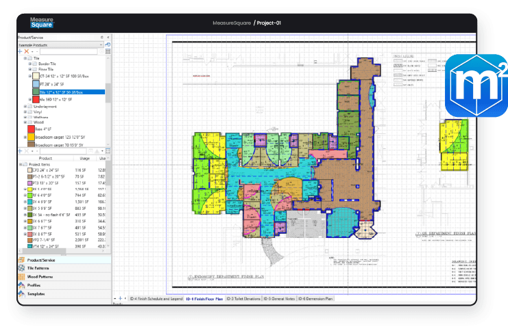 • Onscreen takeoff for all surfaces products, linear footages, and item counts.